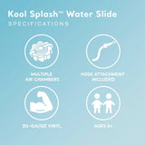 Transform your backyard into a water park with the Kool Splash Inflatable Water Slide. Engineered with durable materials to withstand repeated use, this slide provides a safe yet thrilling experience for children. The efficient setup system allows for quick inflation, while the reinforced climbing steps and splash landing zone ensure both excitement and safety during hot summer days.